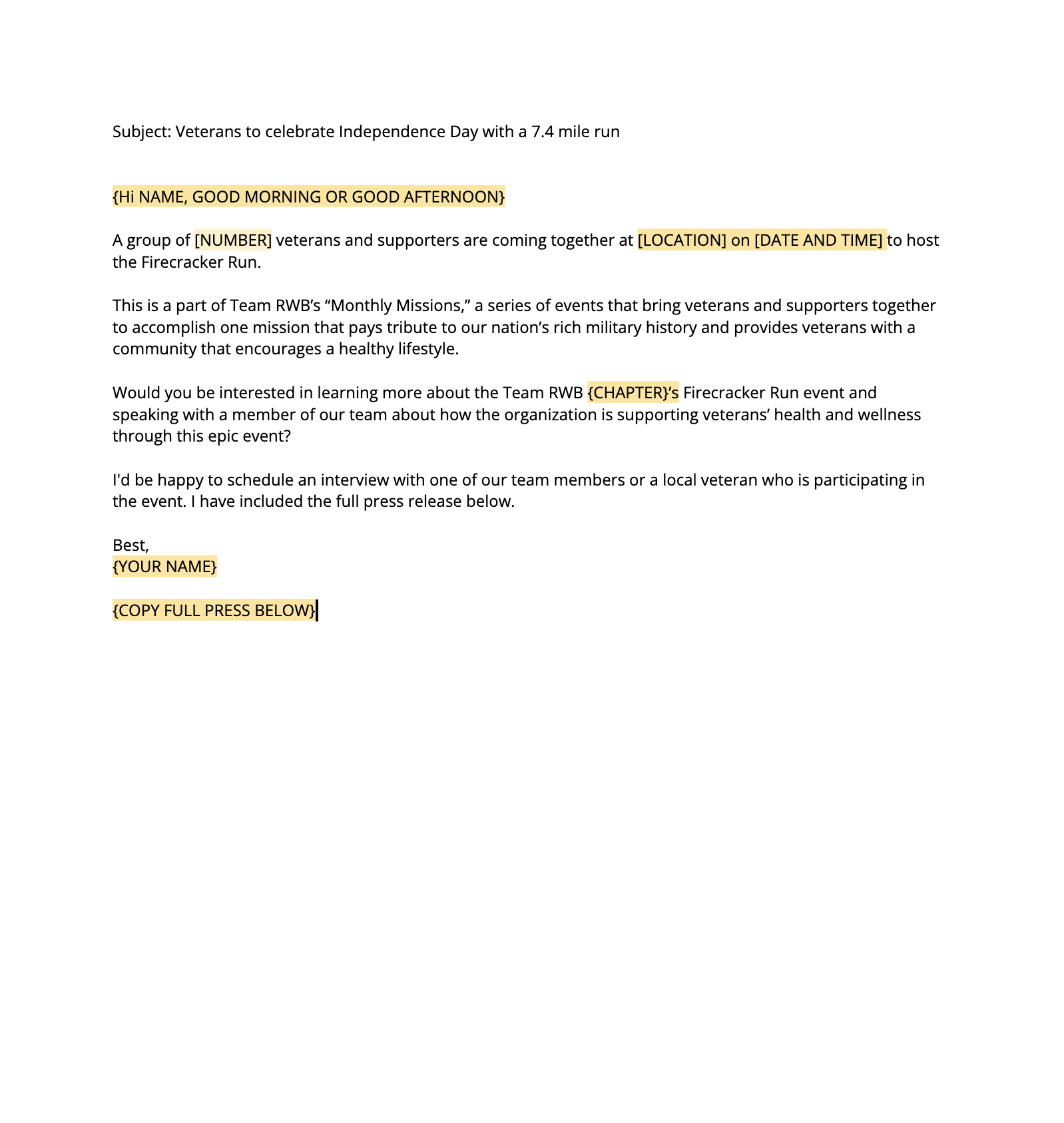 Save a copy of this email and make it you own before sending to your local media contacts.