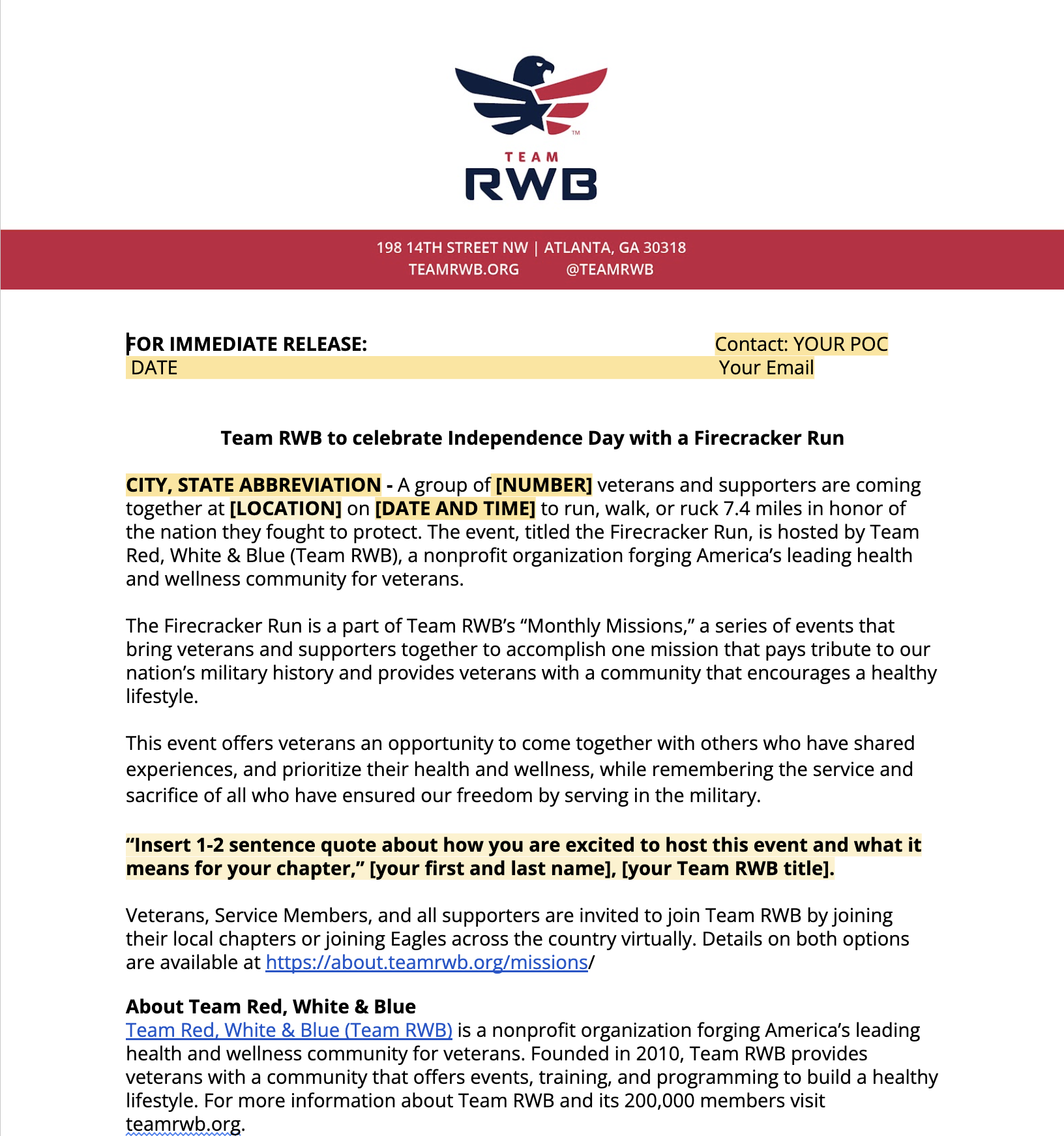 Save a copy of this press release and fill in the blanks to share with your local media outlets.